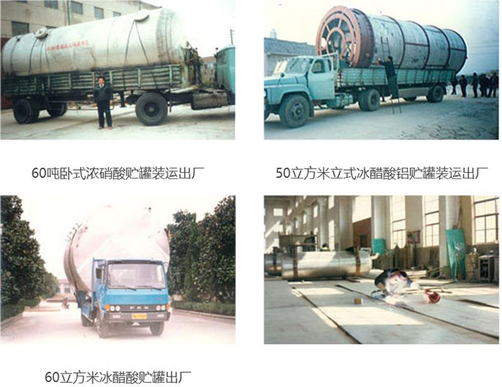 工業純鋁板制汽車運輸槽車、臥式、立式貯罐、高位槽。(主要用于貯運 濃硝酸、冰醋酸等腐蝕液體)不銹鋼、碳鋼制各種汽車運輸槽車,臥式、 立式貯槽,高位槽計量槽。特殊規格可按用戶需求設計、制造。